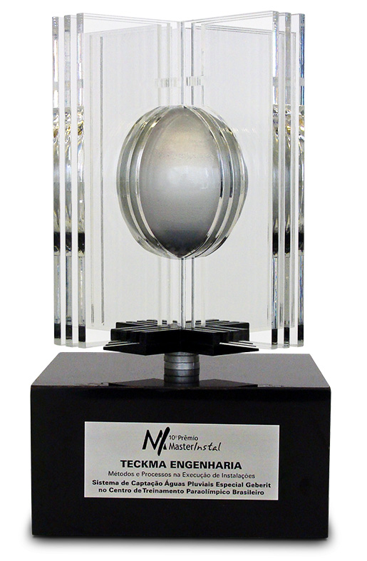 A Teckma conquistou mais um Prêmio Masterinstal, desta vez por sua inovação e qualidade nas instalações do Centro Paraolímpico Brasileiro. Na categoria Métodos e Processos na Execução de Instalações, o case vencedor foi Sistema Especial de Captação de Águas Pluviais Geberit, onde foi adotada uma solução inédita em obras deste porte: esta foi a primeira obra no Brasil a utilizar coletores em inox com flange especial.